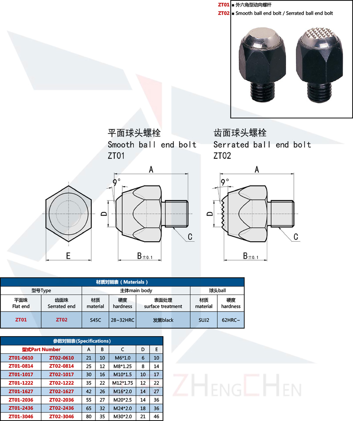 براغي اليرقة ذات نهاية كروية ناعمة ذات رأس كروي ZT59